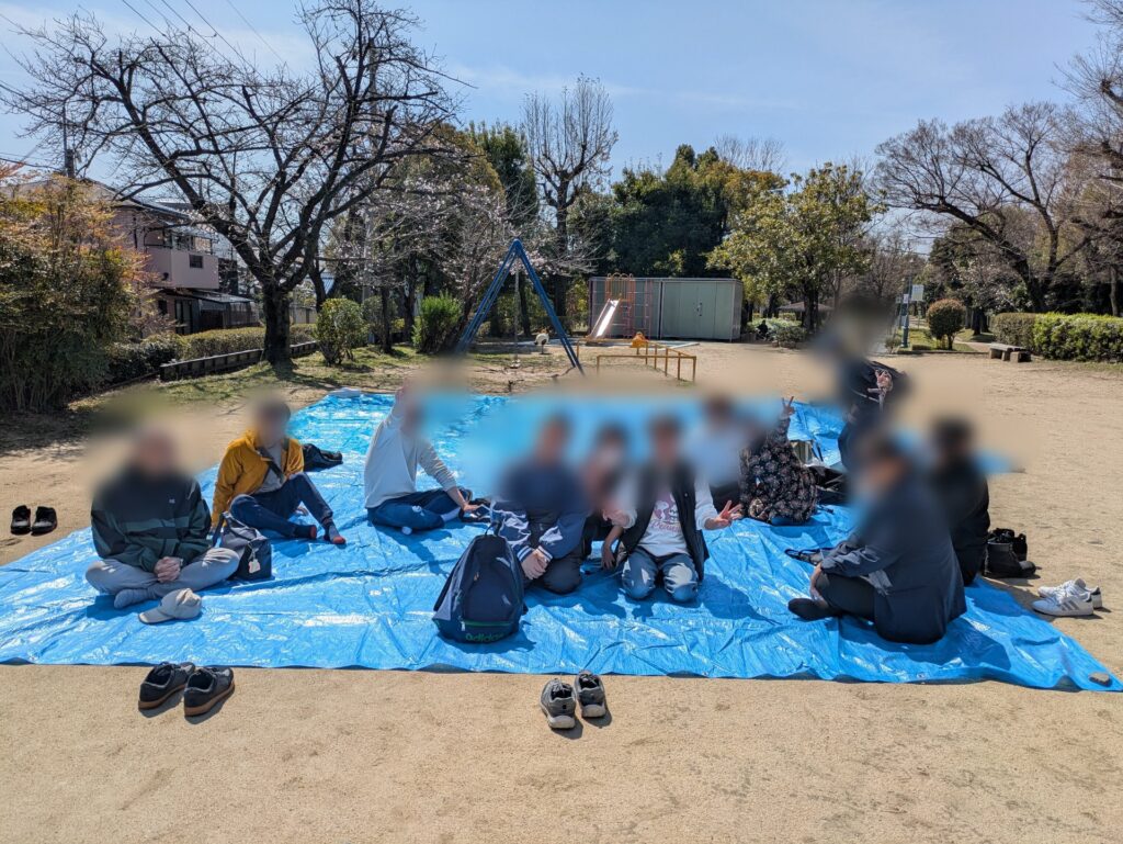 今年のお花見は、天候がギリギリまで安定せずみんなで「お花見はどうなんねやろうな。雨っぽいなー」ていう日もあれば、「お花見の日は、晴れそうやな」っていう日もあれば、「やっぱり曇りで前日ぐらいまでずーっと天気悪いなー」とみんなで言いながら、当日まで待ち遠しい毎日でした